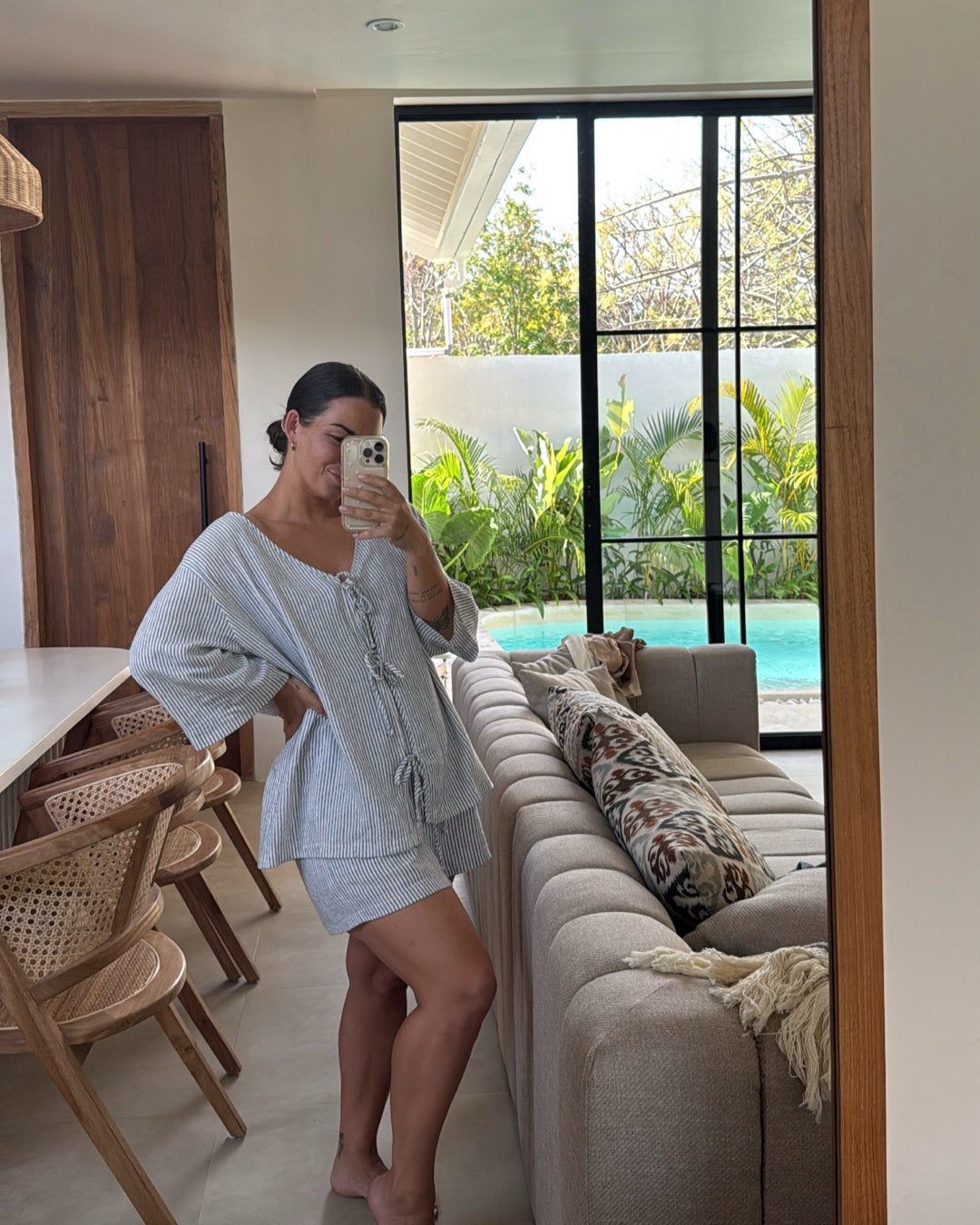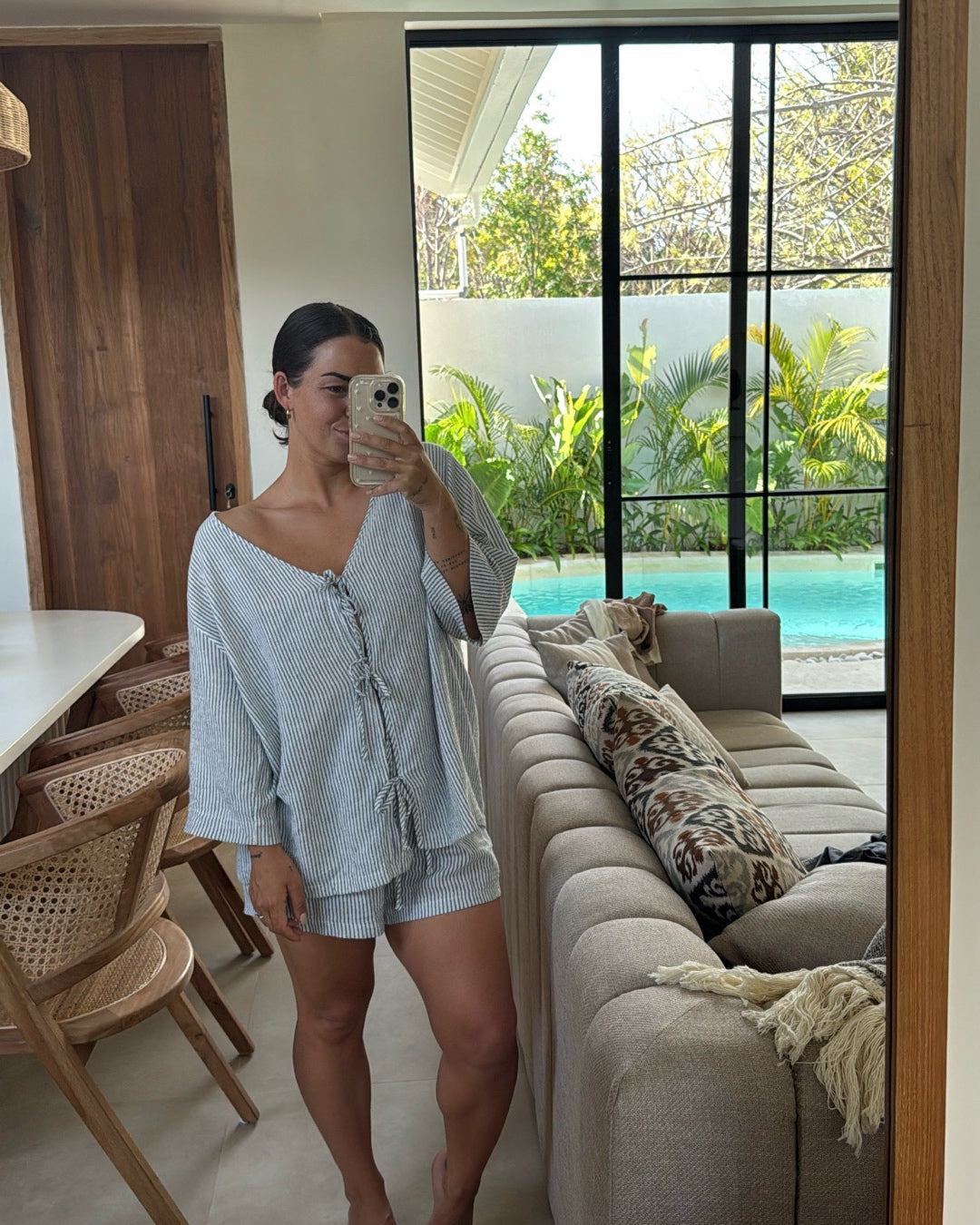 slightly looser fitting then our wrap top style